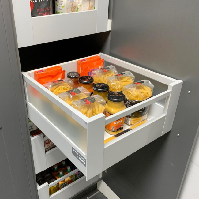 - Blum Antaro Inner Pan Drawers with Designer Glass sides
