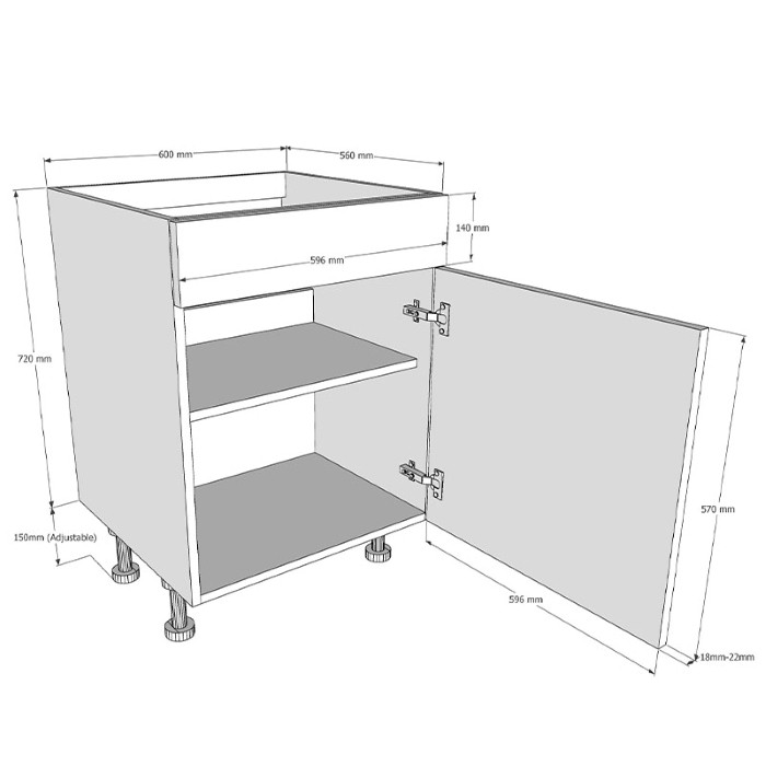 600mm Drawline Sink Base unit & Door Set (Dummy Drawer)